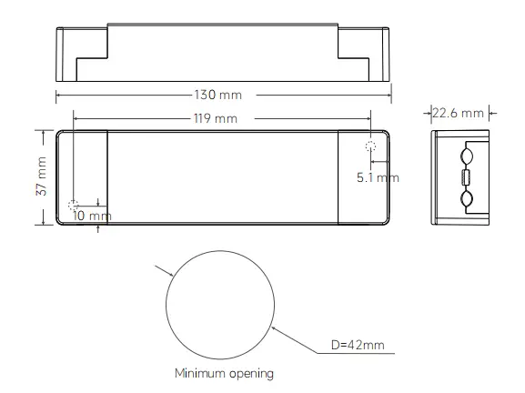 130 × 37 × 22,6 mm (U × G × Y) |