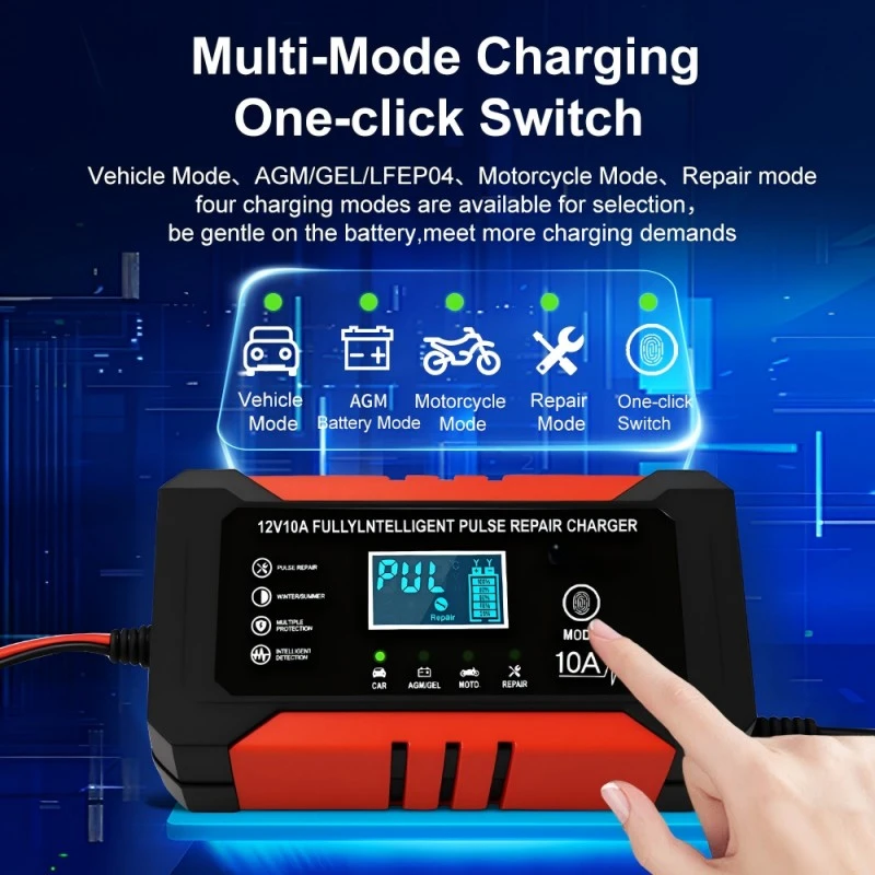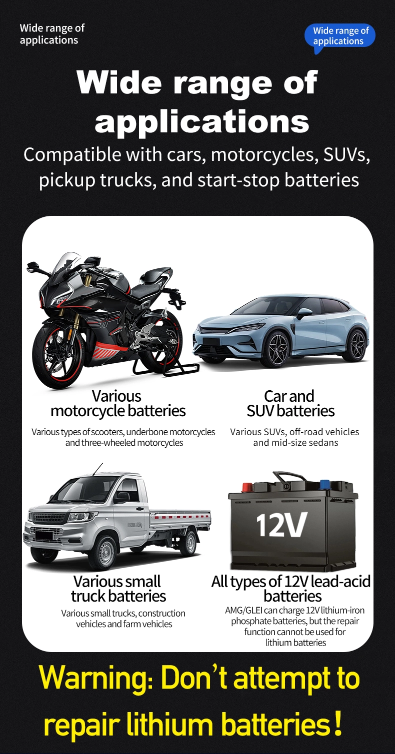 1. Universal Uyğunluq və Çox Batareya Dəstəyi: O, qurğuşun turşusu, AGM, Gel və LiFePO4 daxil olmaqla, 6Ah-dan 180Ah-a qədər batareya tutumlarını əhatə edən bütün 12V batareya növləri ilə problemsiz işləyir. 110~230V geniş giriş diapazonu regional məhdudiyyətləri aradan qaldıraraq onu dünyanın 100-dən çox ölkə və regionunda istifadəyə yararlı edir.