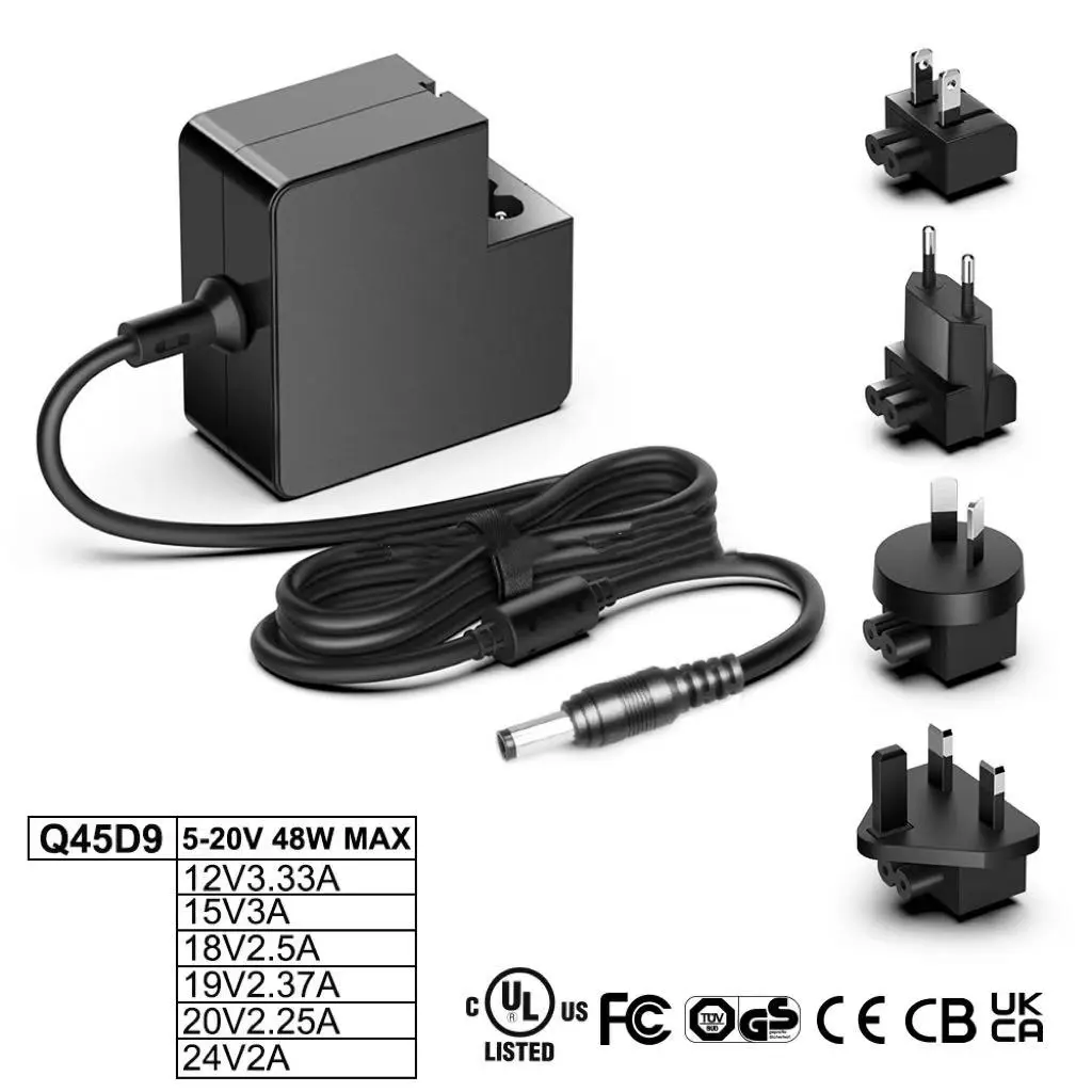 12v / 3.33a, 15v / 3a, 18V / 2,5A, 19V / 2.37a, 19V / 2.53a, 20v / 2.25a, 24v / 2a |
