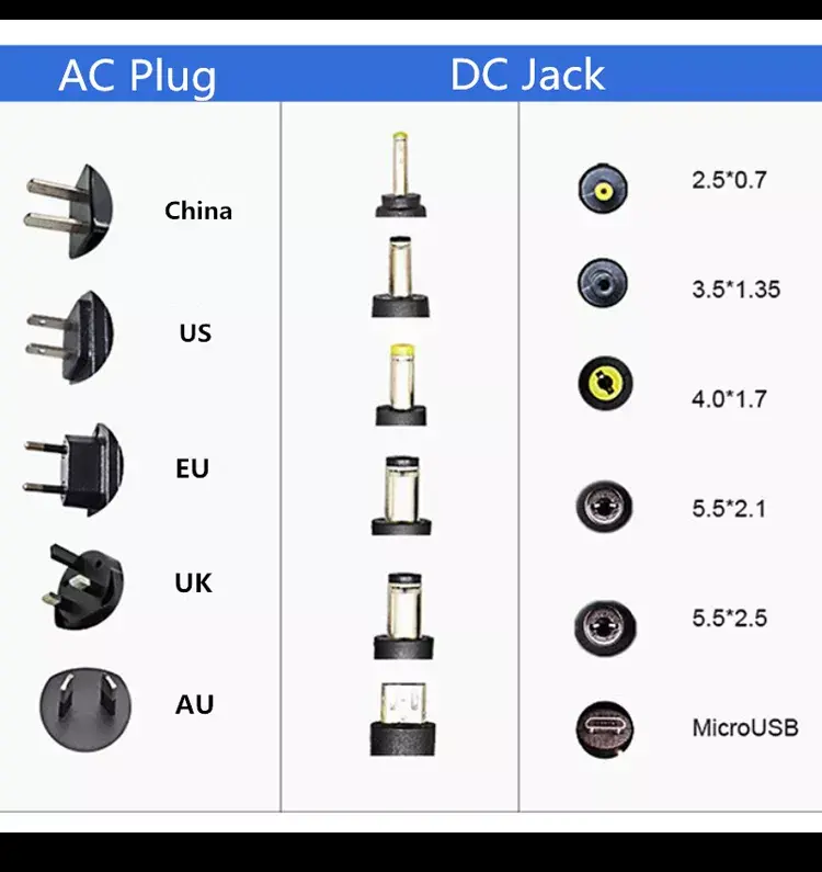 Bağlayıcı Növü: Standard DC Barrel Connector (ümumi ölçüləri 5.5mm × 2.1mm və ya 5.5mm × 2.5mm, cihaz tələblərinə əsasən özelleştirilebilir).