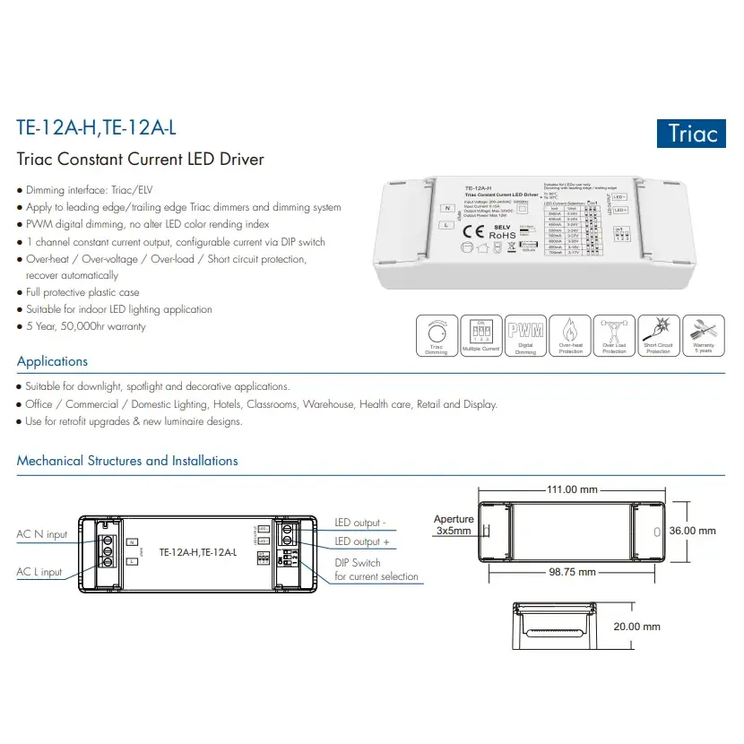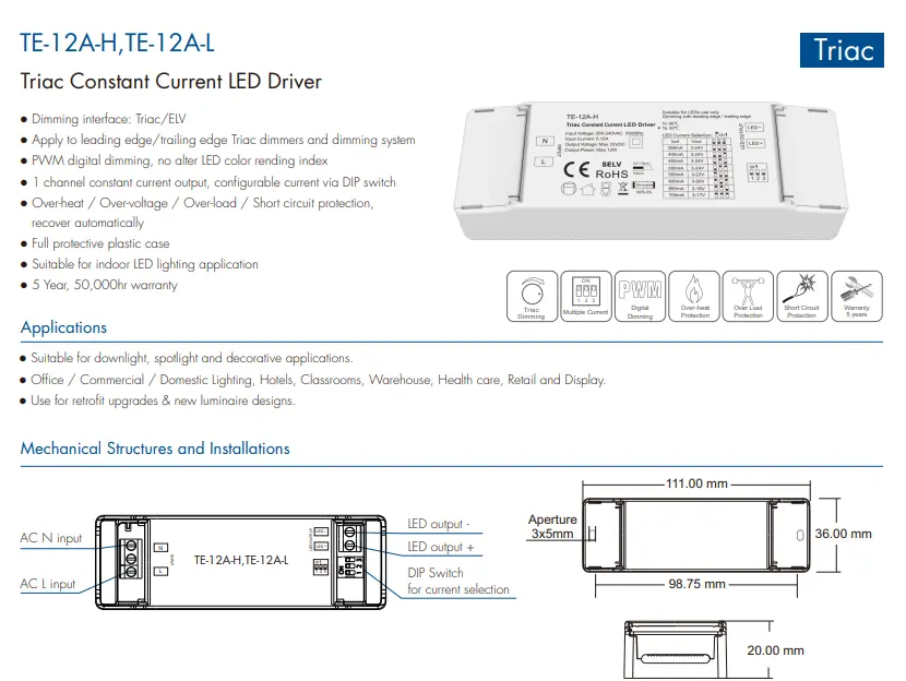 Starwell yüksək keyfiyyətli 12 Vt sabit cərəyanlı triac tündləşdirici led sürücüsü həddindən artıq gərginlik, həddindən artıq cərəyan və qısaqapanmadan qorunma funksiyalarını birləşdirir və bir çox beynəlxalq enerji səmərəliliyi və təhlükəsizlik standartlarına cavab verən yüksək güc faktoru və aşağı harmonik təhrifə malikdir. Onun yığcam dizaynı quraşdırmanı asanlaşdırır və aşağı işıqlar, işıqforlar və dekorativ işıqlar kimi müxtəlif daxili işıqlandırma ssenariləri üçün uyğundur, bu da onu enerjiyə qənaət edən təmir işləri və ağıllı işıqlandırma tətbiqləri üçün ideal sürücü həllinə çevirir. MəhsulXüsusiyyətlər: