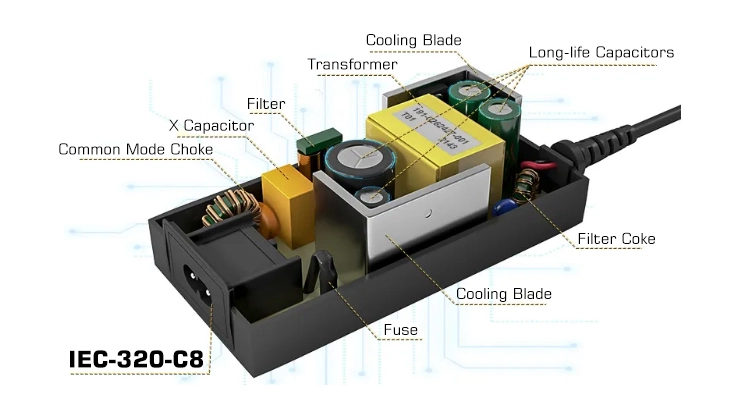STARWELL 150 Vt masa üstü güc adapterində IEC C6 standart güc giriş portu və 5,5*2,1 mm DC çıxış konnektoru var – bu, yüksək güclü cihazlar üçün peşəkar güc həlli kimi xidmət edir. 150W AC/DC güc adapterinin gərginlik çıxış dəqiqliyi ±2%-ə qədər yüksəkdir və enerjiyə çevrilmə səmərəliliyi 90%-i ötür. Təhlükəsizliyi təmin etmək üçün CE və FCC sertifikatlarından keçmişdir. STARWELL güc adapteri ofis, əyləncə və kommersiya ssenariləri üzrə cihazları gücləndirmək üçün idealdır, o, orijinal adapterlərə sərfəli alternativdir və ya çoxlu cihazların enerji ehtiyacları üçün genişləndirmədir.