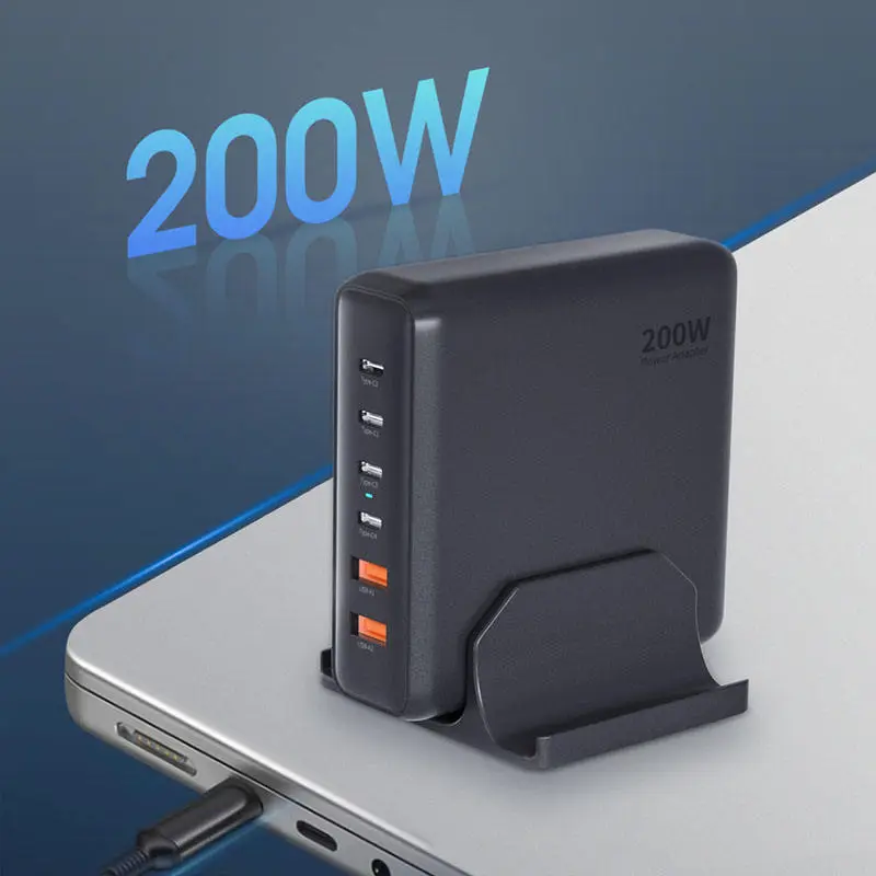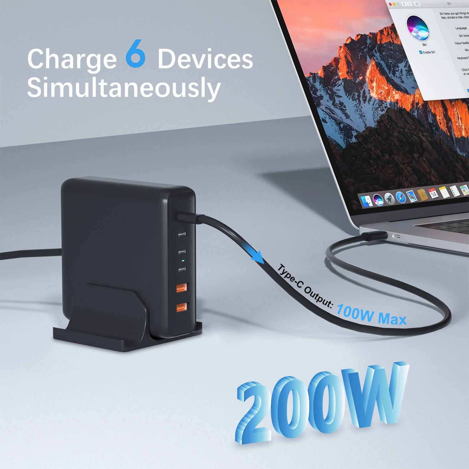 Gan 200w sürətli şarj cihazı 4 USB-C + 2 USB-A 200W PD şarj cihazı
