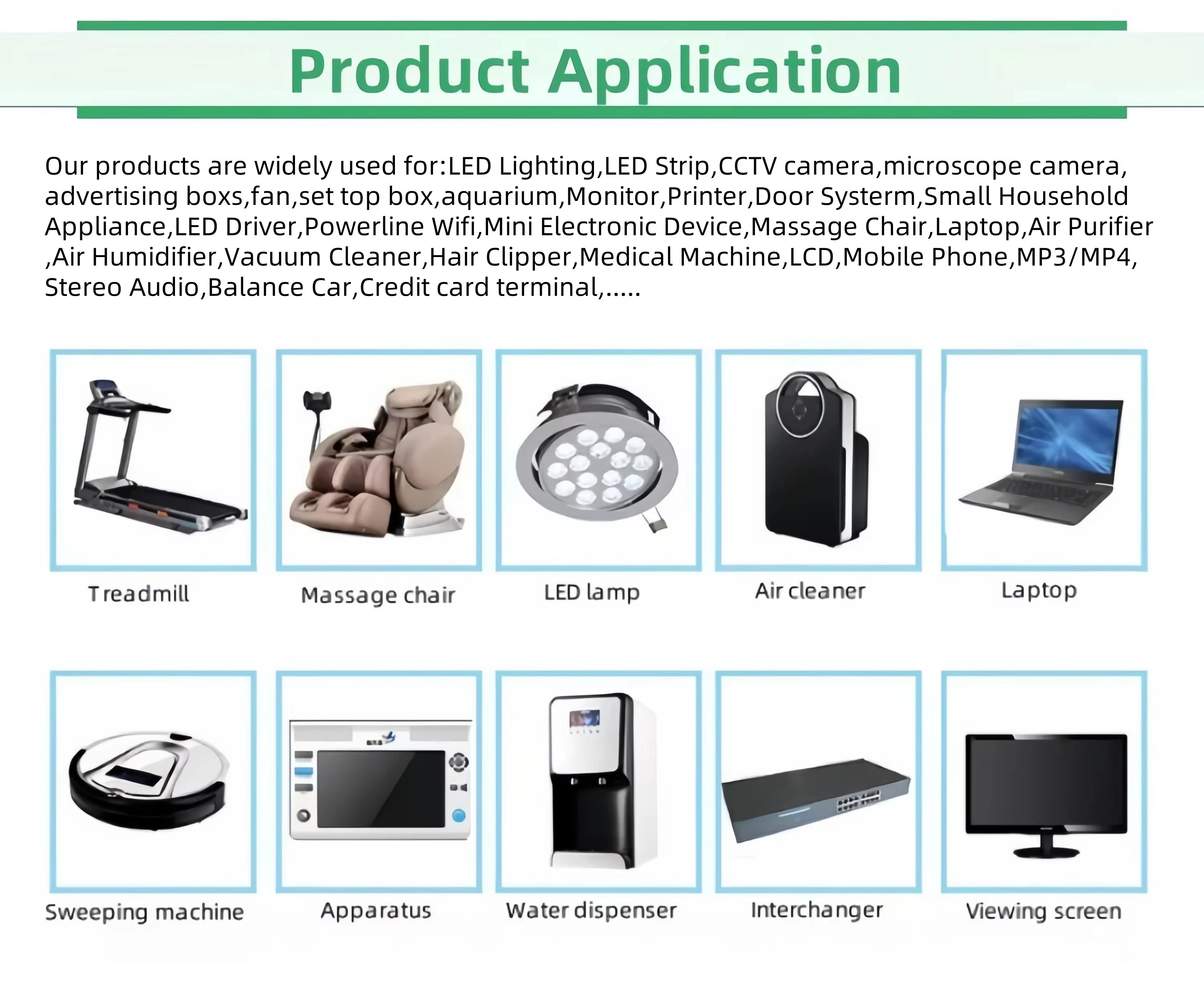 Bu çox yönlü 72 Vt adapter güc üçün uyğundur: