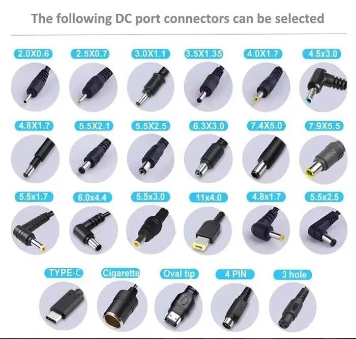 3. Konnektor Uyğunluğu: Cihazınızın elektrik prizinə etibarlı şəkildə uyğunlaşmaq üçün adapterin DC çıxış fişinin düzgün polariteye (çox vaxt mərkəz müsbət) və fiziki ölçüsünə (məsələn, 5.5mm x 2.1mm) olduğunu təsdiq edin.