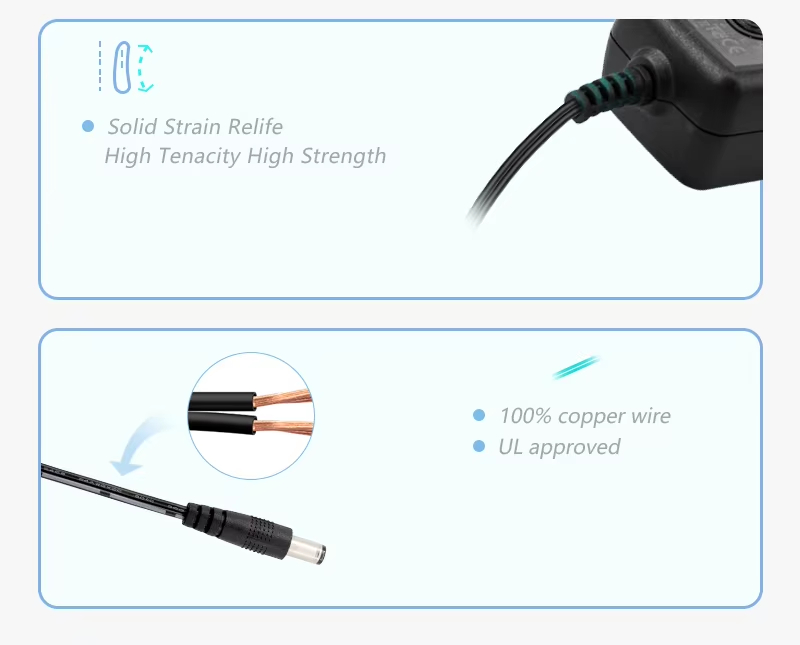 Səmərəli və sabit enerji təchizatı: Yüksək performanslı 24W güc adapteri olaraq, səmərəli dönüşüm əldə etmək üçün qabaqcıl keçid dəyişdirilə bilən fiş enerji təchizatı texnologiyası qəbul edir. Cihazlarınız üçün davamlı və saf enerji təmin edən, birbaşa cərəyan (AC-in DC-dəki Dol dəyişdirilə bilən fug güc adapterinə) birbaşa çevirə bilər.