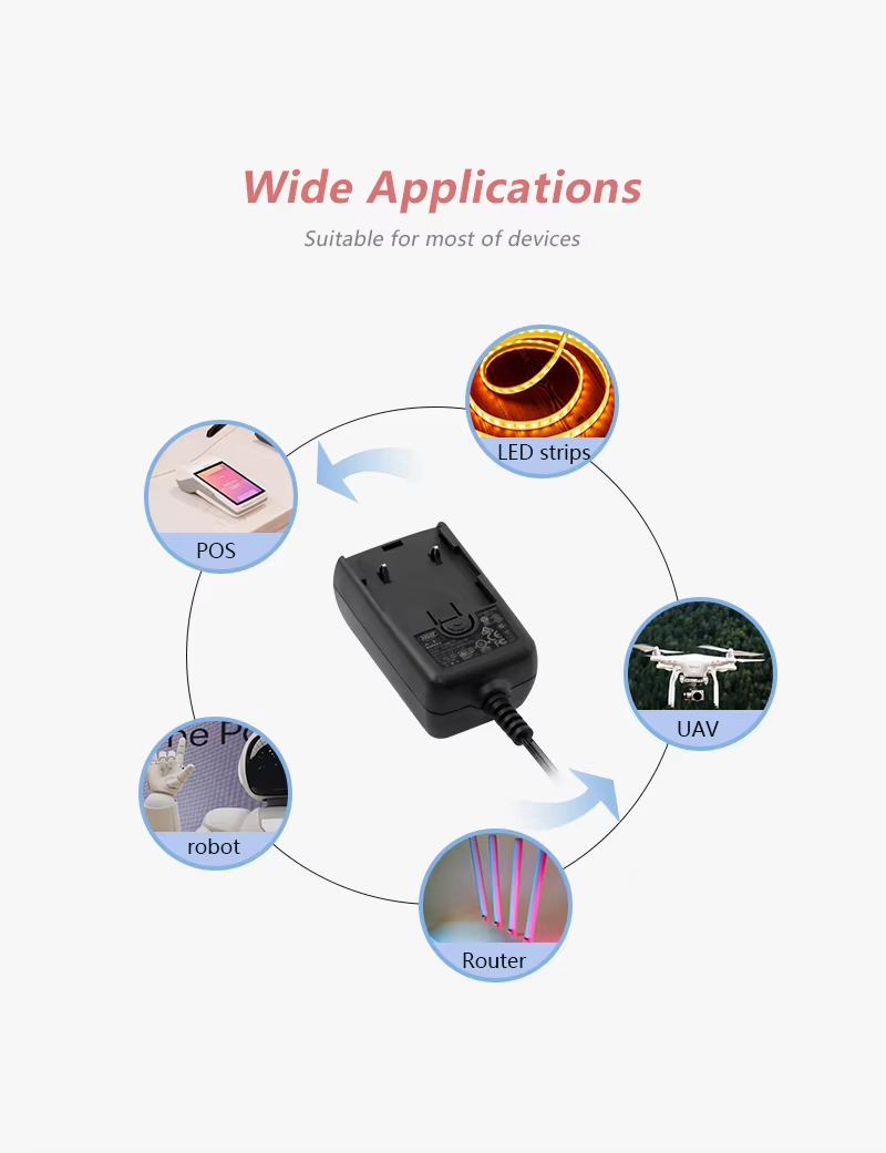 Geniş çeşidi ssenariləri: LED işıq zolaqları, ağıllı dinamiklər, şəbəkə yönləndiriciləri və ya digər kiçik elektrik cihazları, bu güclü keçid dəyişdirilə bilən fiş enerji təchizatı ən ideal və təsəlliverici seçimdir!