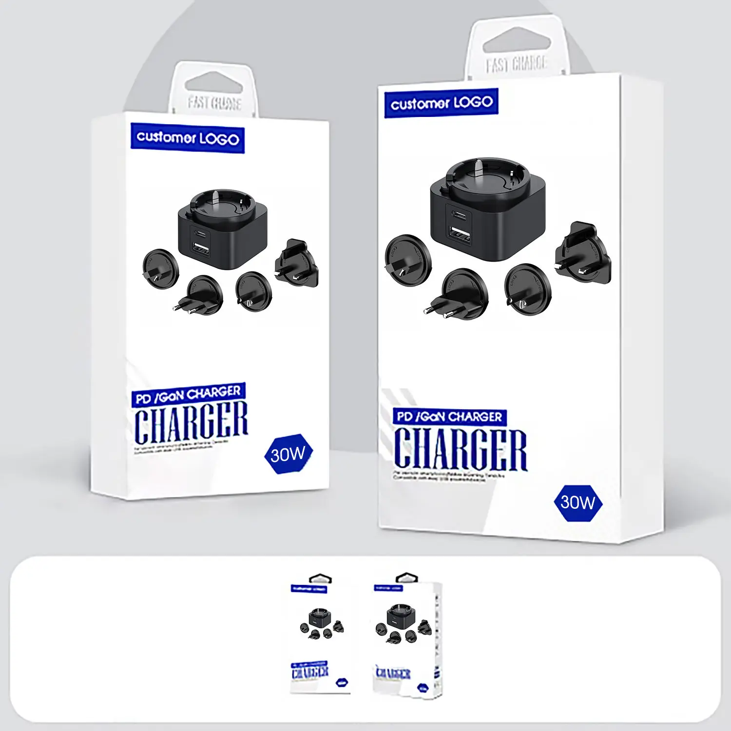 Yığcam 30W Universal Gan PD şarj cihazı, 30W-ni dəyişdirilə bilən plug PD şarj cihazı