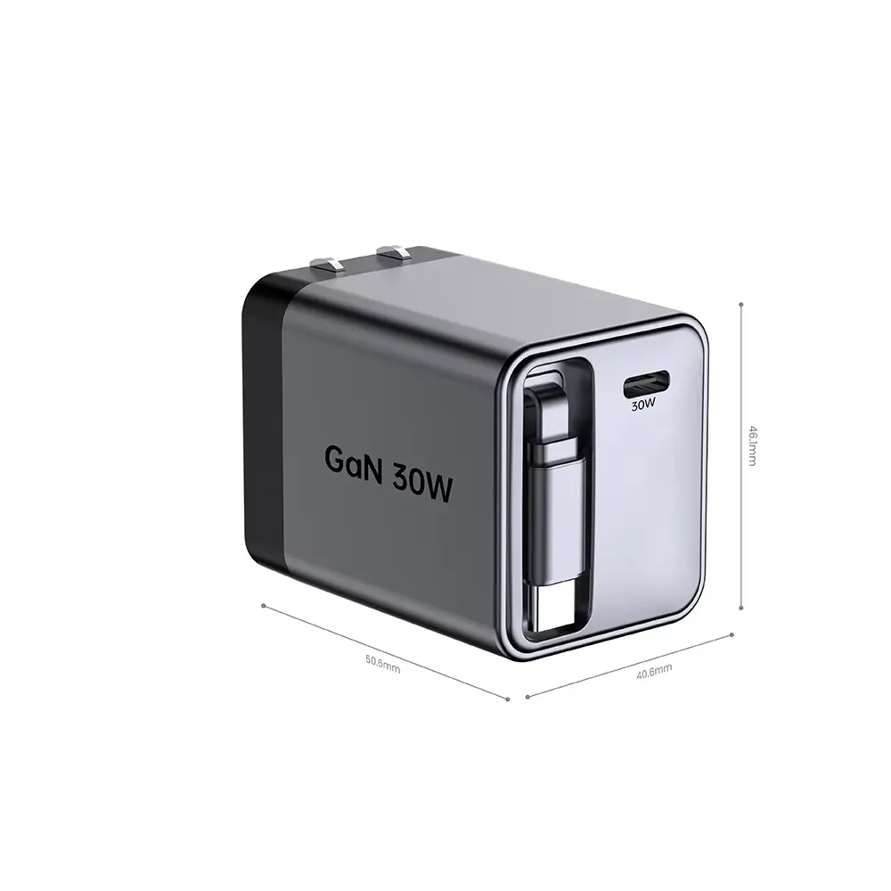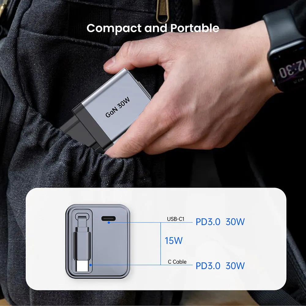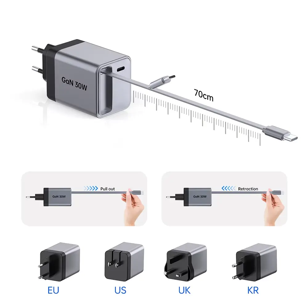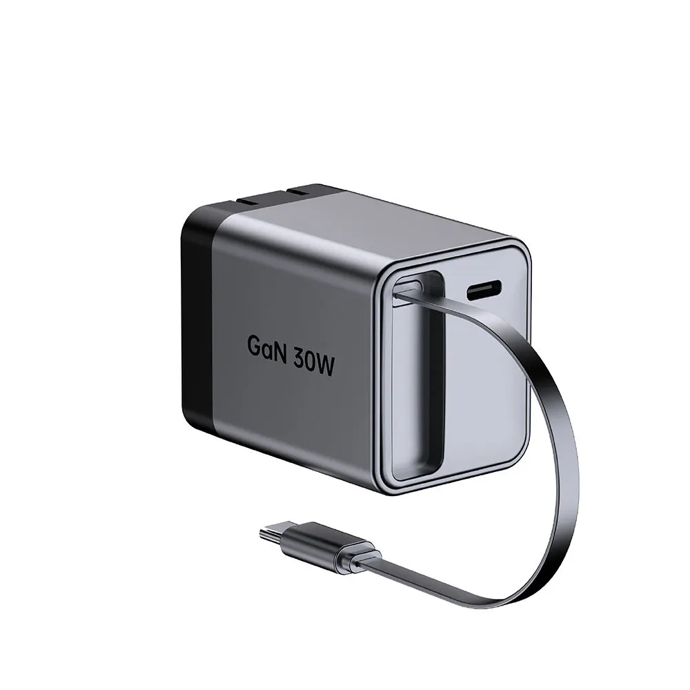 30W, geri çəkilə bilən tip C kabel xüsusiyyətləri olan sürətli şarj cihazı: