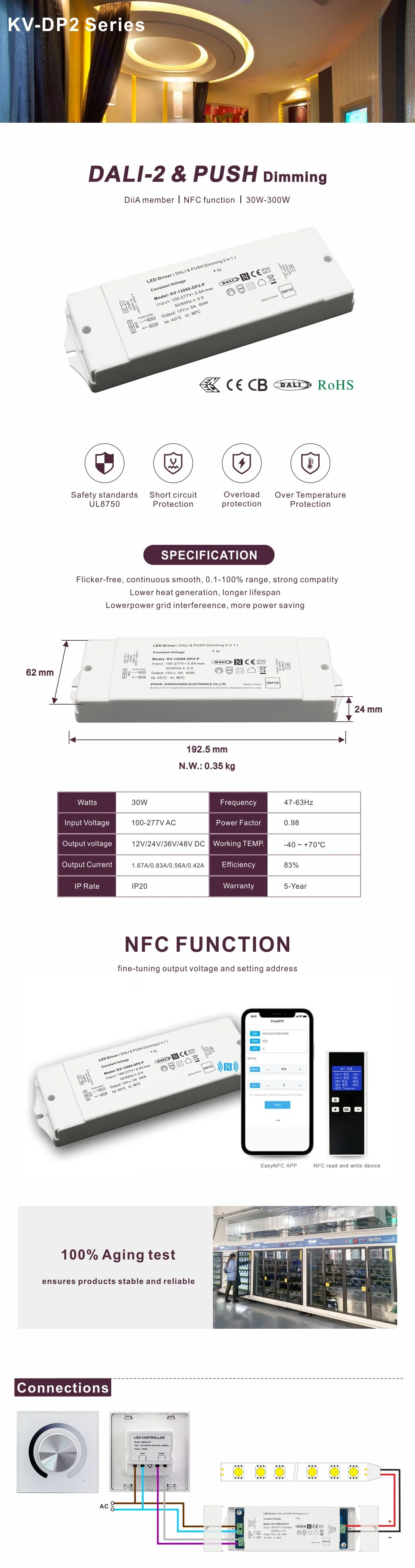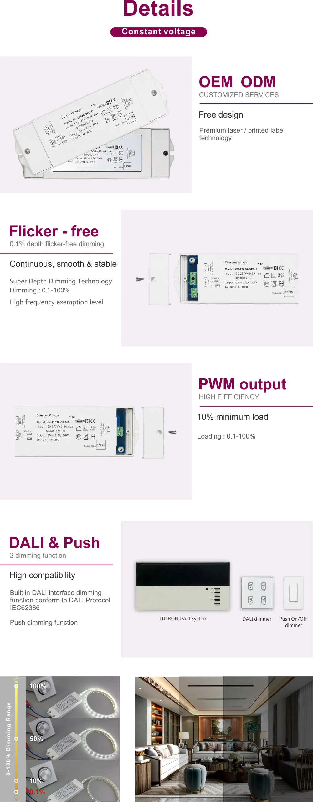 Güclü DALI funksionallığına əlavə olaraq, bu sürücü əla qaralma təcrübəsi təklif edir. O, ipək kimi hamar NFC Qaranlıq Smooth Flicker Yox effektinə nail olur, hətta aşağı parlaqlıq səviyyələrində görünən titrəmələri və titrəmələri tamamilə aradan qaldırır, görmə qabiliyyətini effektiv şəkildə qoruyur və rahat və sağlam işıqlandırma mühiti yaradır. Onun geniş AC giriş gərginliyi diapazonu (100-265V giriş) dizaynı ona bütün dünyada elektrik şəbəkələrindəki gərginlik dəyişkənliyinə uyğunlaşmağa imkan verir və müxtəlif regionlarda stabil işləməyi təmin edir.