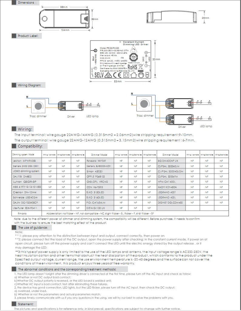 Yüksək keyfiyyətli PE294R 42V maks. 200ma sabit cərəyanlı triak qaralma led sürücüsü yüksək güc faktoru, yüksək effektivlik, yüksək dəqiqlik, səmərəli dayanıqlı aşağı itki açarı idarəetmə çipinin istifadəsi və yüksək performanslı komponentlər onu aşağı səs-küylü uzun ömür və digər xüsusiyyətlərə malik olan Çin istehsalçısı Starwell tərəfindən hazırlanmış sabit cərəyan qaraldan LED dalğıclarından biridir.