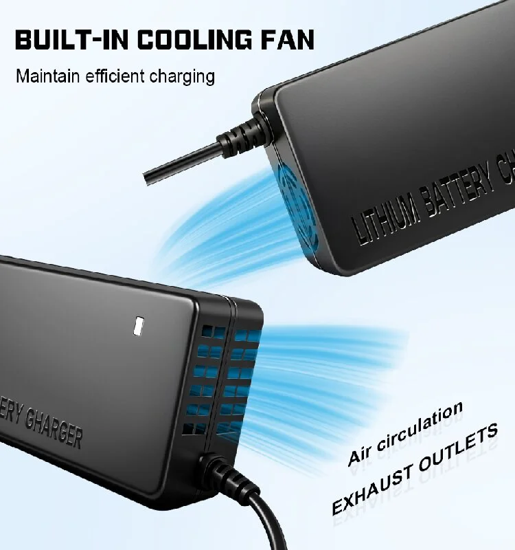 Daxili mikrokompüter idarəetmə çipi ilə təchiz edilmiş şarj cihazı real vaxt rejimində akkumulyatorun gərginliyinə və temperaturun dəyişməsinə nəzarət edir. Doldurma prosesinin təhlükəsiz və idarə edilə bilən qalmasını təmin etmək üçün Batareyanın İdarəetmə Sistemi (BMS) ilə birlikdə işləyir və bununla da litium-ion batareya paketlərinin ciddi tələblərinə tam cavab verir.