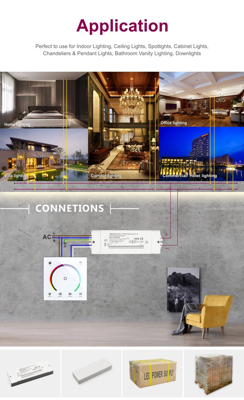 İstər ofislərdəki LED panel işıqları, istər ticarət mərkəzlərindəki LED aşağı işıqlar, istər otel dəhlizlərindəki gizli işıq zolaqları, istərsə də ev məkanlarında vurğu işıqlandırması olsun, bu sürücü ideal seçimdir. Tam qablaşdırma ilə kompakt alüminium ərinti korpusu əla istilik idarəetməsini və uzunmüddətli sabit işləməyi təmin edir. Həddindən artıq gərginlik, həddindən artıq cərəyan, qısa qapanma və qızdırma üçün quraşdırılmış çoxsaylı qorunma sxemləri bütün işıqlandırma sistemi üçün hərtərəfli təhlükəsizlik qorunmasını təmin edir.