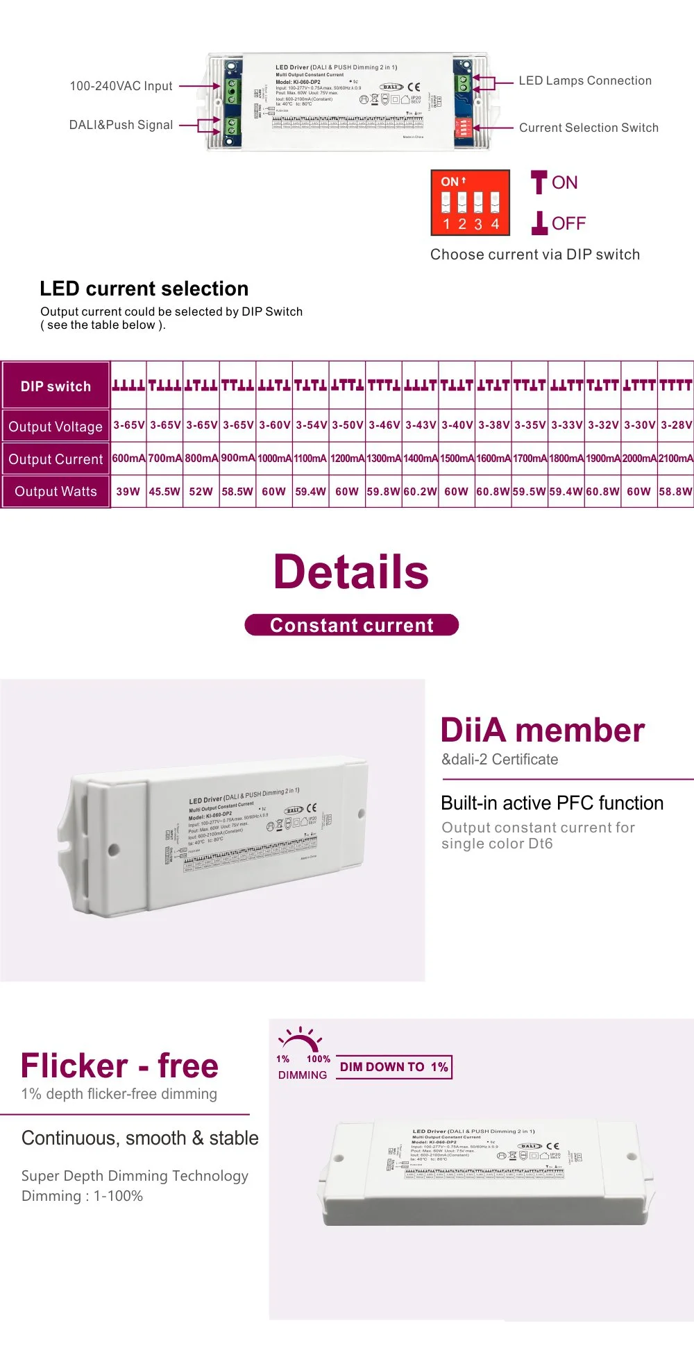 60W sabit cərəyan dali karartma CCT led sürücüsü |