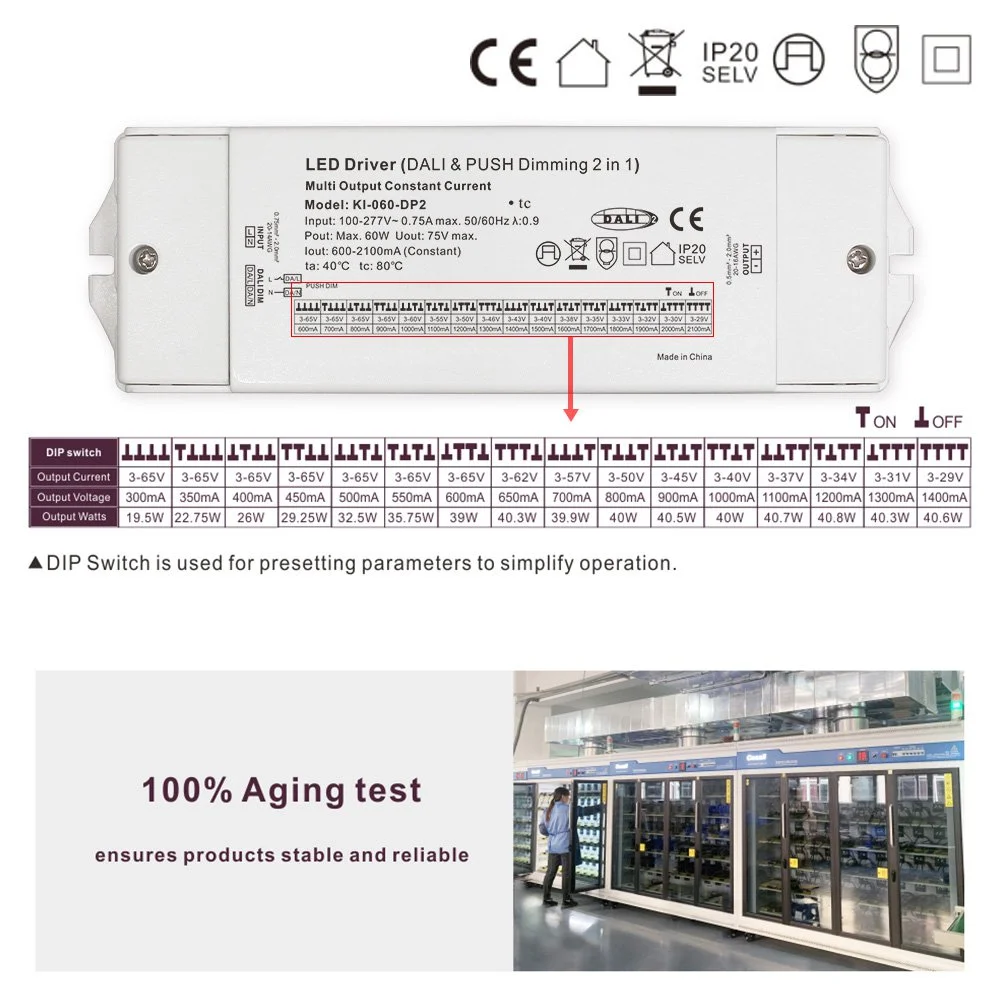60 Vt sabit cərəyan sürücüsü olaraq, çıxış cərəyanının (tipik dəyər 700 mA-dır, müştərilərin LED modul tələblərinə uyğun olaraq tənzimlənə bilər) yüksək sabit olmasını təmin etmək üçün qabaqcıl qapalı dövrə sabit cərəyan idarəetmə texnologiyasını qəbul edir. Bu dizayn LED-lərdə cərəyan dalğalanmalarının səbəb olduğu işığın zəifləməsini və ya rəng sapmasını effektiv şəkildə aradan qaldırır, əsaslı şəkildə lampaların uzunmüddətli parlaqlığına və xidmət müddətinə zəmanət verir. Geniş gərginlikli giriş diapazonu və sabit cərəyan çıxış xüsusiyyətləri onu LED aşağı işıqlar, işıqlandırma lampaları, panel işıqları, xətti işıqlar və işıq zolağı modullarının müxtəlif xüsusiyyətləri ilə mükəmməl uyğunlaşdırır.