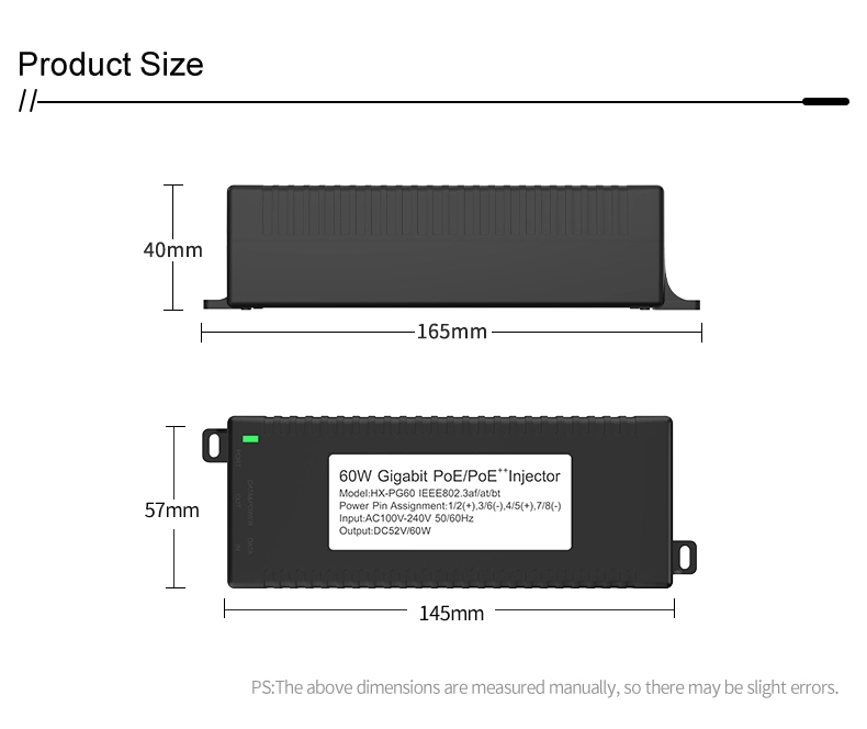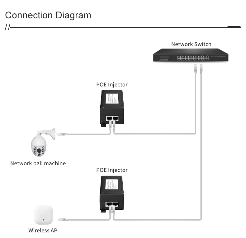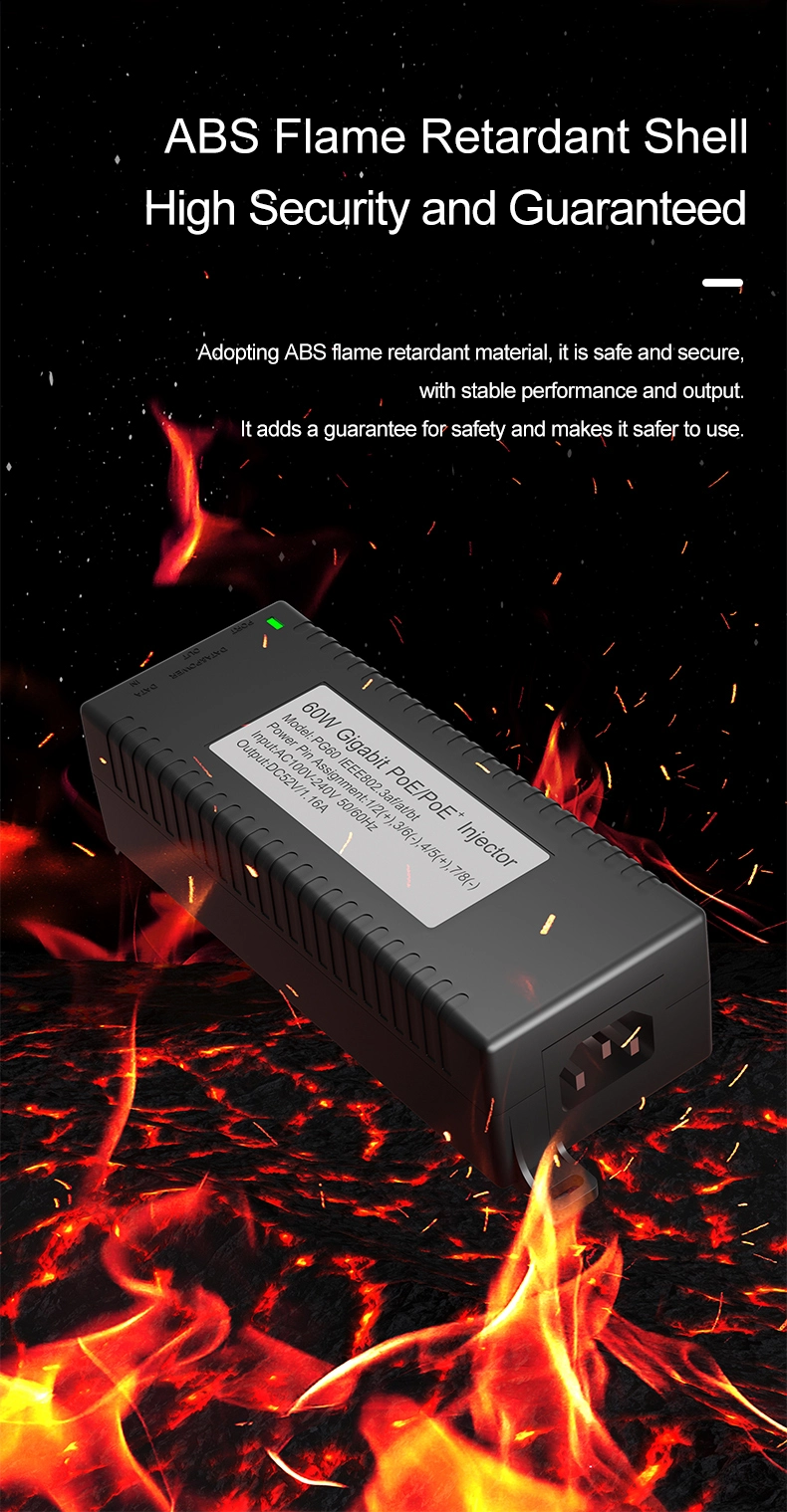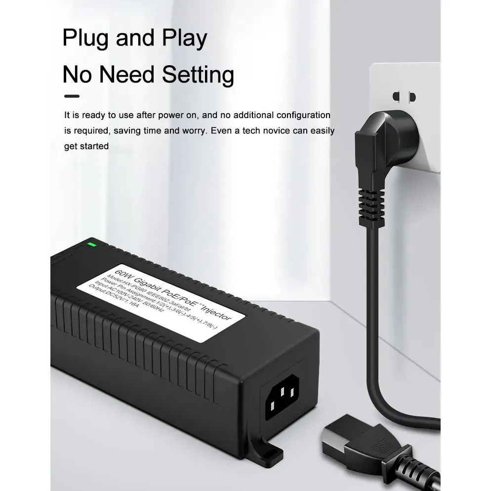 Təhlükəsizlik Nəzarəti: IP Kamera Təhlükəsizlik və Şəbəkə Cihazı üçün Gigabit 60W masaüstü POE injektoru IP kameraları və PTZ kameralarını sabit enerji ilə təmin edir.