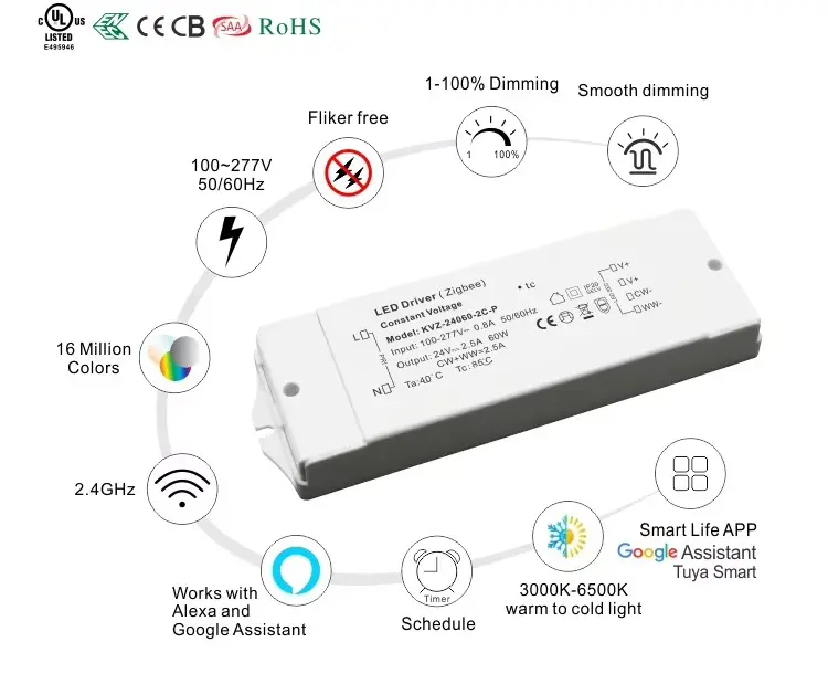 Asan Quraşdırma, Davamlı Performans Sadəlik üçün nəzərdə tutulmuş Zigbee 3.0 led Driver 60W həm sadə, həm də təhlükəsiz olan sadə naqil birləşmələrinə malikdir. IP20 reytinqi ilə quru və rütubətli yerlər - qapalı və ya qorunan mühitlər üçün uyğundur. 5 illik zəmanətlə dəstəklənir, uzun müddətli dinclik təklif edir.
