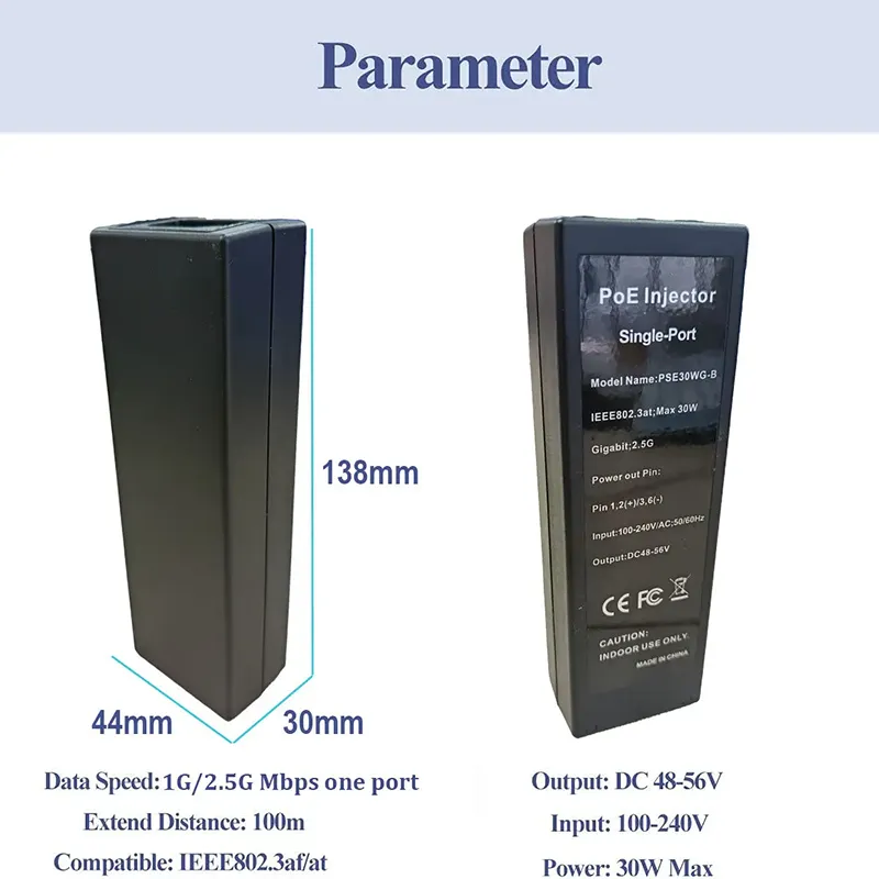 Çində peşəkar enerji təchizatı istehsalçısı olaraq, Starwell 802.3afat 48V 30W 1000Mbps Gigabit Ethernet PoE Enjektörünü təqdim edir. Bu cihaz 10/100/1000Mbps/2.5G avtomatik danışıqları dəstəkləyir və həddindən artıq cərəyan, həddindən artıq gərginlik və qısa dövrələrə qarşı çoxsaylı qoruma sxemlərinə malikdir. -20°C-dən 50°C-ə qədər iş temperaturu diapazonu ilə IP kameralar, simsiz giriş nöqtələri və VoIP telefonlar kimi müxtəlif şəbəkə cihazları üçün uyğundur. Məhsul CE, FCC və RoHS daxil olmaqla sertifikatlara malikdir və 3 illik zəmanətlə gəlir.