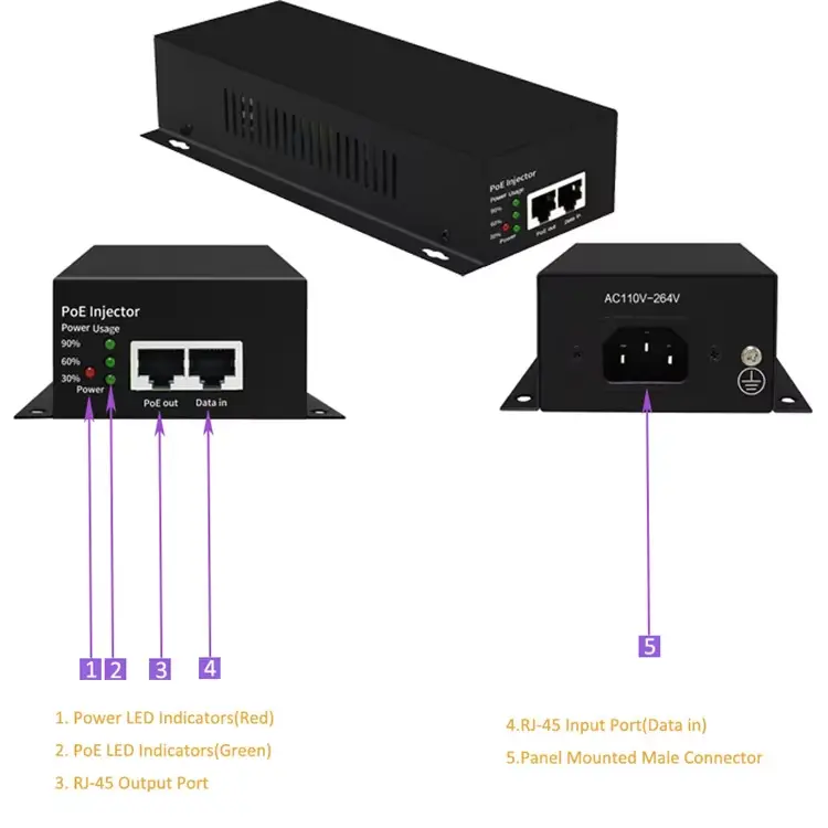 90W Gigabit POE injektoru |