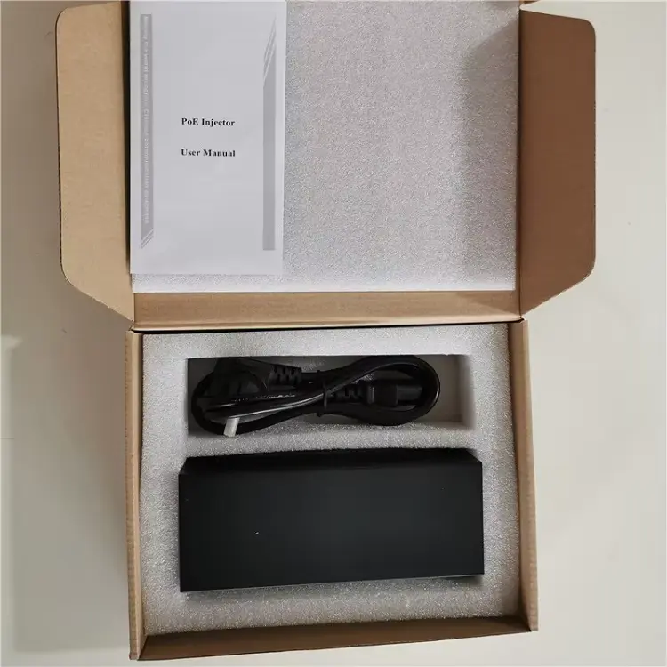 1. 90W Gigabit POE injektoru: 1 dəst 2. Təlimat: 1PCS 3. Uyğunluq sertifikatı, zəmanət kartı: 1PCS |