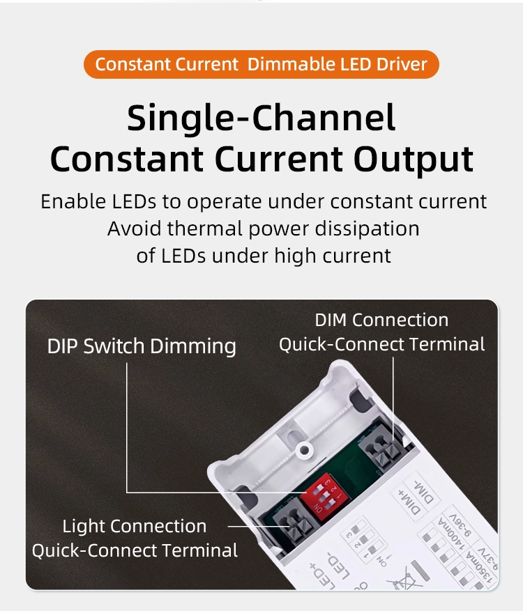 İkili Qaralma Rejimləri: Sabit cərəyan tündləşdirmə LED sürücüsü 0-10V/1-10V ikili qaralma siqnal girişini dəstəkləyir. Qaralma diapazonu 0-100%, qaralma xətti ≥95% təşkil edir. O, heç bir tünd titrəmə və ya geriləmə olmadan tutqunluqdan tam parlaqlığa problemsiz və hamar bir keçid əldə edə bilər. O, müxtəlif ağıllı qaralma sistemləri ilə uyğun gəlir və müxtəlif ssenarilərin işıqlandırma tələblərinə cavab verə bilər.