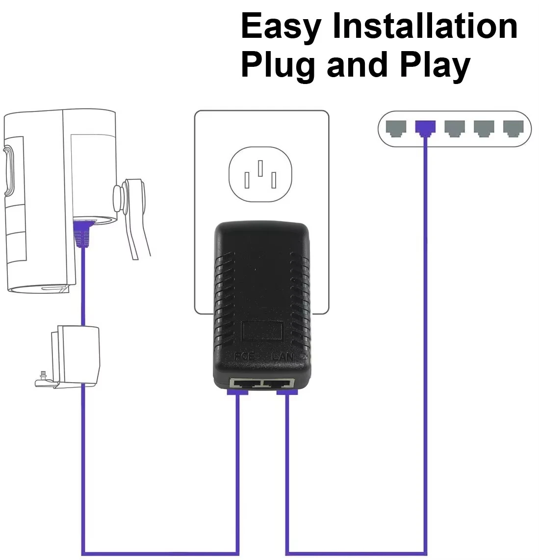 · Plug and Play: Heç bir konfiqurasiya tələb olunmur. Sadəcə olaraq açarınızdan LAN kabelini və PoE kabelini cihazınıza qoşun.