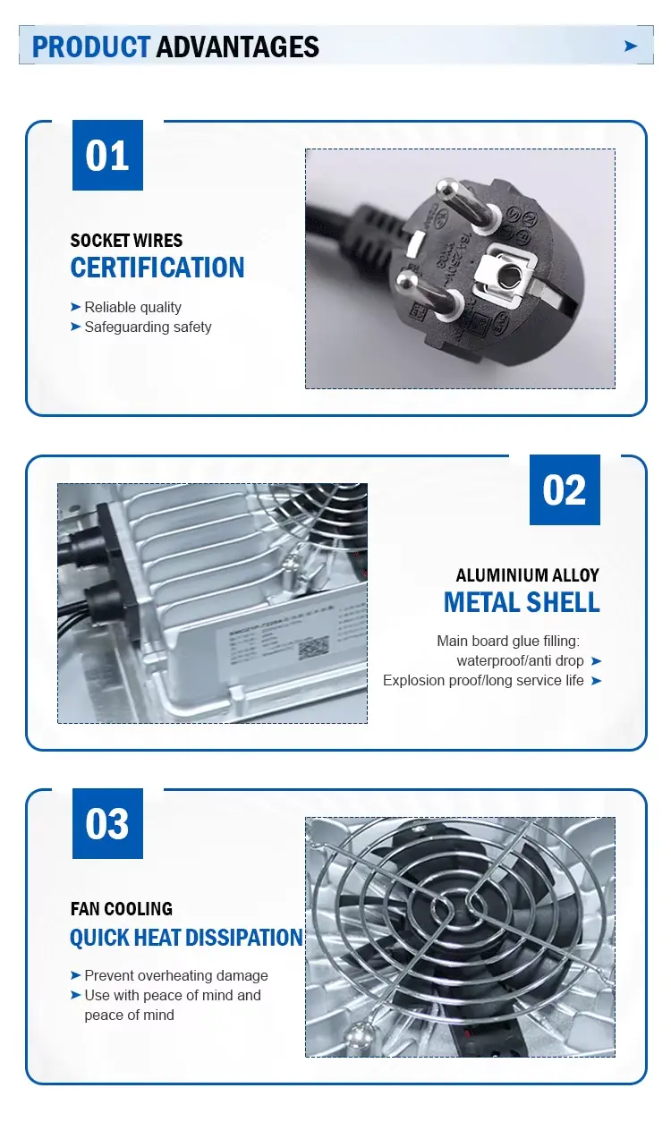 Yüksək Səmərəlilik və Ağıllı Qoruma: 93%-ə qədər səmərəliliyə və ≥0,98 güc faktoruna nail olan bu şarj cihazı enerji itkisini minimuma endirir və əməliyyat xərclərini azaldır. Quraşdırılmış qorumalara həddindən artıq gərginlik, qısaqapanma, tərs polarite və həddindən artıq temperatur mühafizəsi daxildir. LED göstəricisi bir baxışda aydın doldurulma vəziyyətini təmin edir.