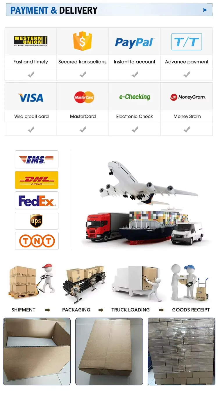 A4: Kiçik sifarişlər ekspress (FEDEX, DHL, EMS, TNT) ilə göndərilir. Böyük sifarişlər dəniz və ya hava yolu ilə göndərilir. FOB qiyməti mövcuddur. Siz öz ekspeditorunuzdan və ya bizim ekspeditorunuzdan istifadə edə bilərsiniz.