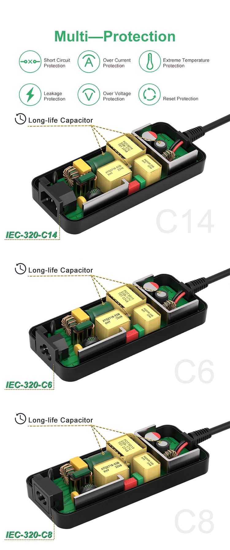 * 200W seriyası üçün daha çox vahidlər: 5V/8V/9V/12V/13.5V/15V/18V/19V/24V/25V/30V/36V/29V/30V/42V/48V mövcuddur * Təhlükəsizlik: OCP/OVP/OTP, CQBK, həddindən artıq yüklənmənin avtomatik kəsilməsi, həddindən artıq gərginliyin kəsilməsi, avtomatik istilik kəsilməsi. * Geniş uyğunluqlar: LED Şerit İşıqları, 3D Printer, vetçina radio ötürücü, CCTV kameraları, avtomobil sabvufer gücləndiricisi, audio gücləndirici, simsiz marşrutlaşdırıcı, ADSL Pişiklər, Nəmləndirici, HUB, Klaviatura, BT Dinamik, Monitor, Veb kamera, DVR, NVR, audio/video enerji təchizatı